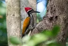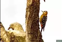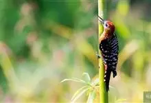 棕腹啄木鸟为啄木鸟科,啄木鸟属是中等体型的鸟类,体长约20厘米。头顶部具红色斑带。脚强健,有趾4个,其中2个向前,2个向后,各趾的趾端均具有锐利的爪,巧于攀登树木。尾羽的羽干刚硬如棘,…全部>>