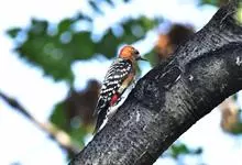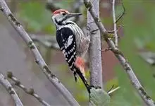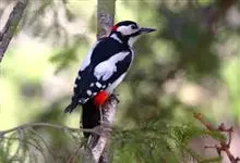 小斑啄木鸟,是啄木鸟科、啄木鸟属的小型鸟类,体长14-18厘米。额和颊白色,头顶雄鸟红色,雌鸟黑色。后颈至上背黑色,下背白色而具黑色横斑。两翅黑色具白色横斑。尾黑色,外侧尾羽具白色横斑。下体灰白色,…全部>>