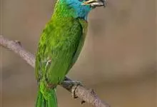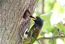 绿拟啄木鸟为鴷形目,须科,拟啄木属的一种。形较大拟啄木鸟略小,体长约260mm。头、颈及胸浅褐而具淡黄白色条纹;喉几为淡黄白色;身体余部草绿色。虹膜棕褐色,眼周裸露部黄色;嘴峰角黄色;跗跖和趾角黄…全部>>