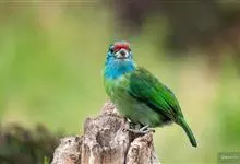 蓝喉拟啄木鸟,是须鴷科、拟啄木鸟属的鸟类。蓝喉拟啄木鸟为小型鸟类,体长20-23厘米。前额至头顶鲜红色,其上有一宽阔的黑色横带,将此红色分为前后二块;头侧、颏、喉蓝色,下喉两侧各具一红色点斑。…全部>>