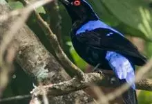 和平鸟中型鸟类,体长24~28厘米。眼红色,嘴、脚黑色。雄鸟从头顶到尾上覆羽等整个上体辉蓝色具紫色光泽,其余体羽黑色。雌鸟通体铜蓝色,仅飞羽黑褐色。常见的低地留鸟,…全部>>