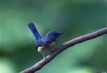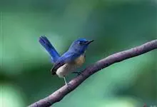 棕腹大仙鹟:体重24-28克,体长15-17厘米,是一种小型的色彩亮丽的鹟。雄鸟上体深蓝,下体棕色,脸黑,额、颈侧小块斑、翼角及腰部亮丽闪辉蓝色。与棕腹仙鹟易混淆,区别在色彩较暗。雌鸟灰褐,…全部>>