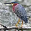绿鹭:是鹳形目鹭科绿鹭属鸟类。体型小,头顶黑,枕冠亦黑色,上体蝉灰绿色,下体两侧银灰色;前额至后枕及冠羽墨绿色,眼后有一白斑,颊纹黑色;颚纹白色,后颈、颈侧和体侧烟灰色;背部披灰绿色矛状长羽,…全部>>