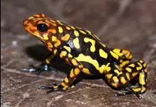 箭毒蛙,是无尾目箭毒蛙科箭毒蛙属动物。箭毒蛙体形较小,一般长1-6厘米,身上的颜色多为黑色与红色、黄色、橙色、绿色等;皮肤内有粘液分泌腺,能使皮肤随时保持湿润;四肢布满鳞纹;足间无蹼。…全部>>