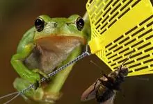 雨蛙,脊椎动物亚门,两栖纲,无尾目,雨蛙科的1属,种类约250种。雨蛙肩带弧胸型,椎体为前凹型。适于树栖,指、趾末端多膨大成吸盘,末两骨节间有1间介软骨,是趋同演化的一个物种。…全部>>