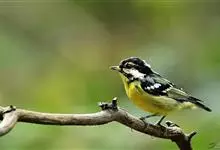 黄颊山雀是雀形目山雀科山雀属鸟类。雄鸟额、头顶和羽冠为具有光泽的黑色;额基、眼先、眉纹、脸颊和耳羽等头颈侧为鲜艳的明黄色;贯眼纹黑色;后颈亦具一黄斑;上体灰黄绿色,羽缘黑色;尾羽黑色具蓝灰色羽缘,…全部>>