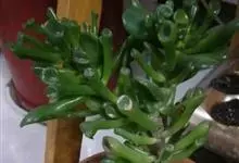 筒叶花月,是景天科青锁龙属的多年生草本植物。植株多分株,灌木状,茎较粗壮,圆柱形,表皮灰褐色;叶片肉质,互生,呈圆筒状,簇生于茎或分枝顶端,叶端呈斜截形,截面为椭圆形;花呈星状,淡白色;花期秋季。…全部>>