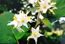 素馨叶白英,是双子叶植物纲、茄科、茄属的一种缠绕灌木,多分枝,光滑无毛,茎具纵向细条纹。聚伞式圆锥花序顶生或侧生;花白带蓝色;萼星形,萼齿长圆形;花冠辐形,具皱折;雄蕊着生于花冠筒喉部,花药黄色,子…全部>>