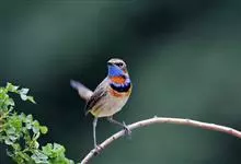 蓝点颏亦称“蓝喉歌鸲”,通称蓝靛颏儿。身体大小和麻雀相似,体长12-13厘米,体重17-18克。头部、上体主要为土褐色。眉纹白色。尾羽黑褐色,基部栗红色。颏部、喉部辉蓝色,下面有黑色横纹。下体白色。…全部>>