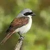 虎纹伯劳:全长165毫米左右。雄性成鸟:额基、眼先和宽阔的贯眼纹黑色;前额、头顶至后颈蓝灰色;上体余部包括肩羽及翅上覆羽栗红褐色,杂以黑色波状横斑;飞羽暗褐色,外翻具棕褐色羽缘;尾羽棕褐色,…全部>>