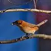 牛头伯劳,又称“红头伯劳”,是伯劳科、伯劳属下的一种鸟类。牛头伯劳全长可达220毫米。喙强健具钩和齿,头顶及枕部栗红;背羽灰褐色;尾羽褐色;黑色贯眼纹明显,尾羽褐色;下体羽棕白,两胁深棕色。…全部>>