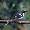斑背燕尾是鹟科、燕尾属中型鸟类,体长24-25厘米。额至头顶前部白色,其余头、颏、喉、胸黑色,后颈有一白领,背黑色具圆形白色斑点,腰白色,两翅黑色具白色翅斑,尾呈深叉状,黑色、具白色端斑。…全部>>