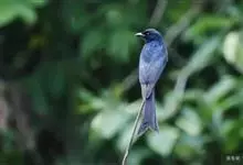 黑卷尾是雀形目卷尾科一属,又称铁练甲、铁燕子、铁林哥、羊蹄刺、榨油郎,体长约30厘米全身蓝黑色而具金属光泽,尾长且分叉较深。幼鸟似成鸟,金属光泽弱,下腹部具近白色的横纹。虹膜暗红色,嘴黑色,脚黑色。…全部>>