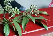 常春藤 Rehd),五加科常春藤属植物中华常春藤的茎叶。叶片革质,通常为三角状卵形或三角状长圆形,叶柄细长,有鳞片,无托叶,花淡黄白色或淡绿白色,芳香,花瓣三角状卵形,外面有鳞片;果实球形,…全部>>