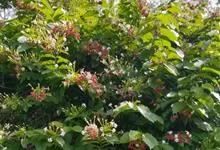 使君子 Jongkind)是使君子科、使君子属攀援灌木,叶对生,椭圆形,两面均被灰白色柔毛。穗状花序,倒挂下垂。花期夏秋。果有五棱,熟时黑色,种子白色。分布于印度、缅甸、菲律宾和中国。喜温润,深根性,…全部>>