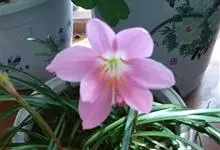 小韭兰学名韭菜莲又名风雨花、菖蒲莲、红玉帘和旱水仙,多年生草本,鳞茎卵球形,基生叶常数枚簇生,线形,扁平,花单生于花茎顶端,下有佛焰苞状总苞,花玫瑰红色或粉红色,蒴果近球形,种子黑色,花期夏秋。韭莲…全部>>