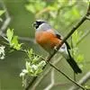 燕雀属小型鸟类,体长14-17厘米。嘴粗壮而尖,呈圆锥状。雄鸟从头至背辉黑色,背具黄褐色羽缘。腰白色,颏、喉、胸橙黄色,腹至尾下覆羽白色,两胁淡棕色而具黑色斑点。两翅和尾黑色,翅上具白斑。…全部>>