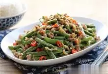榄菜四季豆是以牛肉馅、四季豆为主料,盐、洋葱为配料制作而成的菜品。全部>>