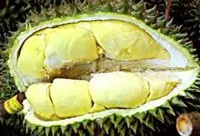 榴梿也叫做“榴莲”。是一种锦葵科榴梿属的常绿乔木。叶片长圆,顶端较尖;聚伞花序,花色淡黄;果实足球大小,果皮坚实,密生三角形刺,果肉是由假种皮的肉包组成,肉色淡黄,粘性多汁。…全部>>
