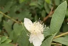 番石榴,别名芭乐、鸡屎果、喇叭番石榴等,为桃金娘科番石榴属的一种乔木植物。其叶片革质,长圆形至椭圆形;花单生或成聚伞花序;萼管钟形,有毛,萼帽近圆形,不规则裂开;花瓣白色;浆果球形、卵圆形或梨形,…全部>>