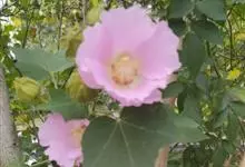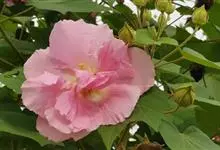 木芙蓉,锦葵科木槿属落叶灌木或小乔木。小枝上有细绒毛;叶片为卵状心形,托叶为披针形,常早落;花单生,花萼为钟形,花冠初为白色或淡红色,后逐渐变为深红色;果实为扁球形,有淡黄色的毛附着。花期8到10月。…全部>>