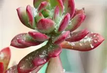 红稚莲是景天科石莲花属的多肉植物。叶片长匙形,先端稍尖,叶面光滑无粉,叶背有凸起的龙骨,叶片翠绿色或深绿色,光照充足、温差加大后,叶尖和叶片上端会变成紫红色,叶片也会变成淡绿中泛白的颜色。…全部>>