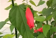 垂花悬铃花是锦葵科、悬铃花属常绿小灌木,外型略似朱槿,但叶片较为狭长浓绿;高30-60厘米,叶片互生,卵形或卵状矩圆形,单叶,有时浅裂,叶形变化较多,叶面具星状毛。花红色,花通常单生于上部叶腋处,下垂,…全部>>