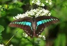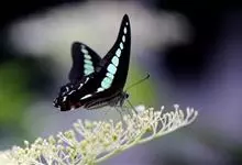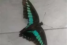 青带凤蝶Graphium sarpedon ,又名青凤蝶,是最普遍的中型凤蝶,飞行速度很快。青带凤蝶的翅膀中央有许多浅蓝色的斑点,很整齐地排列成一条直线。这些斑点由上而下逐渐变大,就像一条青色的带子。全部>>