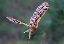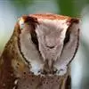 栗鸮:是鸟纲、草鸮科的猫头鹰。体长约29厘米,体重311-360克。是一种中等体型的红褐色鸮。其心形脸庞及时而竖起的“耳朵”与仓鸮甚似。上体红褐而具黑白点斑,下体皮黄偏粉具黑点,脸近粉色。虹膜深褐色,…全部>>