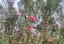 夹竹桃,又名红花夹竹桃、欧洲夹竹桃,是夹竹桃科夹竹桃属的一种常绿直立大灌木,枝条灰绿色,含水液。叶披针形,3叶轮生。聚伞花序顶生,花冠粉红至深红色,花冠漏斗状,有特殊香味。蓇葖果,圆柱形。种子长圆形,…全部>>