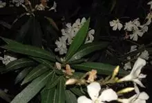 白花夹竹桃是夹竹桃科、夹竹桃属植物夹竹桃的栽培品种。常绿直立大灌木,枝条灰绿色;嫩枝条具稜,被微毛,老时毛脱落。叶3-4枚轮生,下枝为对生,叶面深绿,叶背浅绿色;侧脉纤细平行与中脉成直角;叶柄扁平,…全部>>
