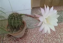 仙人球花 仙人掌科,仙人球属。植株单生或成丛。幼株球形,老株长成圆筒状,高可达75厘米,直径12-15厘米。球体暗绿色,具棱11-12。刺锥状,黑色,长1-1.5厘米。花着生于球体侧方,大型嗽喇叭状…全部>>
