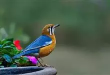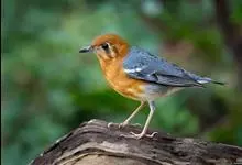 橙头地鸫是鸫科、地鸫属中型鸟类,体长18-22厘米。整个头、颈和下体橙栗色,其余上体包括两翅和尾蓝灰色或橄榄灰色,翅上多具白色翅斑。虹膜褐色或棕褐色,嘴黑褐色或黑色,脚橙黄色或肉黄色。特征极明显。…全部>>