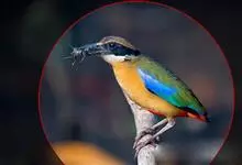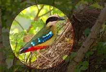蓝翅八色鸫是雀形目八色鸫科的鸟类。体长17-20厘米,体重类约48-70克,体型圆胖,尾短,腿长,以身体具有红、绿、蓝、白、黑、黄、褐、栗等鲜艳夺目,丰富艳丽的色彩而得名,是很有观赏价值的鸟类。主要…全部>>