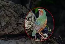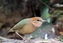 栗头八色鸫又叫锅巴雀,体长为24-26厘米,体重100-135克,是雀形目八色鸫科的鸟类。体型圆胖,尾短,腿长,常在森林底层或低植被中找食无脊椎动物。叫声简单哀婉。…全部>>