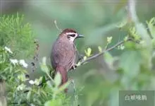 白颊噪鹛是雀形目噪鹛科噪鹛属鸟类,又称土画眉、小画眉、小噪鹃。成鸟额至头顶栗褐色,长眉纹、眼先和颊纹棕白色,眼后至耳羽深褐色,…全部>>