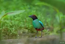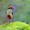 绿胸八色鸫:是雀形目八色鸫科的鸟类,共有12个亚种。体长为16-18厘米,体重65-69克。体型圆胖,尾短,腿长。头黑,上体绿色,两翼深色而具白色斑纹,头顶至后枕深褐,胸及腹部苹果绿,臀亮红。…全部>>