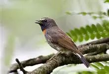 橙胸姬鹟:体长12-16厘米,是一种体型略小的林栖型鹟。尾黑而基部白,上体橄榄褐色,额具一白色横带,两端向上延伸至眼上形成眉斑。翼橄榄色,下体灰。成年雄鸟额上有狭窄白色并具小的深红色项纹,常不明显。…全部>>