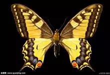 金凤蝶,是鳞翅目凤蝶科凤蝶属动物。金凤蝶为中型凤蝶,翅展70-84毫米,翅背面底色黑褐色,翅脉黑色,翅室具黄斑;前翅背面基部呈暗黄色,亚外缘为黑色,内具一列小黄斑;后翅背面亚外缘区具黑宽边,…全部>>