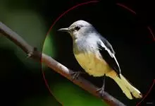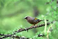 黄喉噪鹛体型略小,顶冠蓝灰色,特征为具黑色的眼罩和鲜黄色的喉。上体褐色,尾端黑色而具白色边缘,腹部及尾下覆羽皮黄色而渐变成白色。黄喉噪鹛隐匿于亚热带常绿林和浓密灌丛,于地面杂物中取食,喜食昆虫,…全部>>