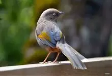 橙翅噪鹛:是噪鹛科、彩翼噪鹛属的中型鸟类,体长22-25厘米。头顶深葡萄灰色或沙褐色。上体灰橄榄褐色,外侧飞羽外翈蓝灰色、基部橙黄色,中央尾羽灰褐色,外侧尾羽外翈绿色而缘以橙黄色并具白色端斑。…全部>>