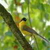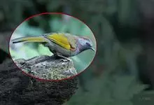 黄喉噪鹛体型略小,顶冠蓝灰色,特征为具黑色的眼罩和鲜黄色的喉。上体褐色,尾端黑色而具白色边缘,腹部及尾下覆羽皮黄色而渐变成白色。黄喉噪鹛隐匿于亚热带常绿林和浓密灌丛,于地面杂物中取食,喜食昆虫,…全部>>