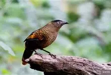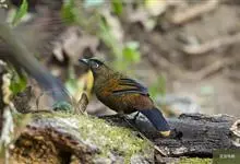栗颈噪鹛是噪眉科、噪鹛属中型鸟类,体长22-25厘米。头顶至枕暗石板灰色,前额、头侧、颏、喉至上胸黑色,耳后至颈侧有一栗棕色块斑,在头后颈侧极为醒目。上体暗橄榄褐色,两翅黑褐色,初级飞羽外翈沾灰。…全部>>