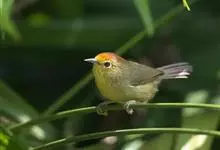 金头穗鹛小型鸟类,体长10~11厘米,是一种黄色小鸟。头顶金黄色有黑色纵纹,眼先黑色,在头、颊和耳羽金黄色的衬托下亦甚醒目。上体橄榄黄色,下体亮黄色,腹和两胁沾绿。…全部>>