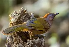 红头噪鹛中型鸟类,体长22~28厘米。头顶棕红色,眼先、脸、颏、喉黑色,上体橄榄色或棕橄榄褐色,外侧飞羽金黄色,尾羽基部亦为金黄色,下体多为暗橄榄褐色。该种和赤尾噪鹛较为相似,…全部>>