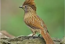 条纹噪鹛是画眉科、噪鹛属中型鸟类,体长28-32厘米。头具短的羽冠,上体栗褐色,飞羽外翻蓝灰色。下体棕栗色,腹以后转为褐白色。除飞羽和尾羽外,所有上、下体羽均具白色羽干纹。极为醒目。野外特征明显,…全部>>