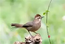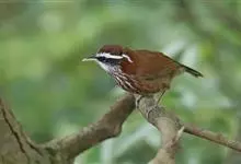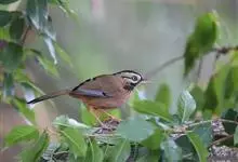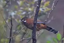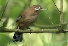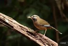 白颊噪鹛是雀形目噪鹛科噪鹛属鸟类,又称土画眉、小画眉、小噪鹃。成鸟额至头顶栗褐色,长眉纹、眼先和颊纹棕白色,眼后至耳羽深褐色,…全部>>