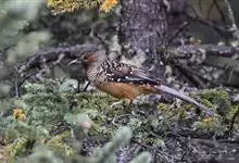 大噪鹛:中型鸟类,体长32-36厘米。额至头顶黑褐色,背栗褐色满杂以白色斑点,斑点前缘或四周还围有黑色。初级覆羽、大覆羽和初级飞羽具白色端斑。尾特长,均具黑色亚端斑和白色端斑。颏、喉棕褐色,…全部>>