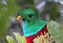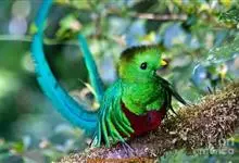 橙胸咬鹃:全长约28厘米。雄鸟头、颈橄榄绿色,上体及中央尾羽栗色;中央尾羽具黑色端,其外侧的2对尾羽黑色,最外3对尾羽基部黑色具白端;翼覆羽有密的黑、白相间横,飞羽黑褐;颏、喉橄榄色,胸橄榄黄,…全部>>