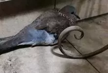 珠颈斑鸠,别名花斑鸠、珍珠鸠、花脖斑鸠、鸪鹪,是鸠鸽科副斑鸠属鸟类。体型中等,体长27~34cm,体重120~205g,雌鸟和雄鸟羽色相似,但雌鸟不如雄鸟羽色亮泽。珠颈斑鸠前额至头顶羽色稍淡,…全部>>